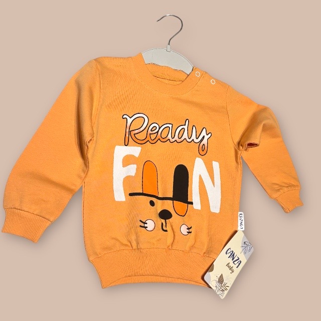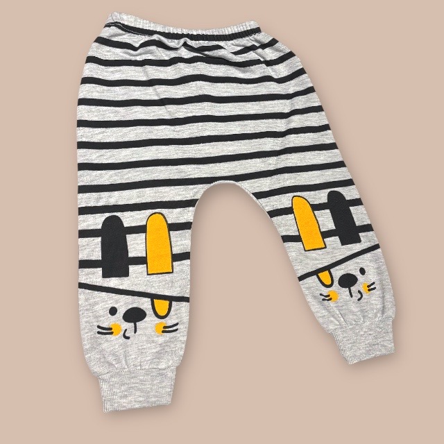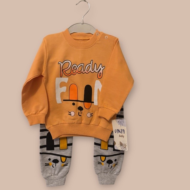 Ett mysigt set med en tröja och ett par joggers i lätt sweatshirtkvalitet av bomull med tryck. Tröjan har lång ärm, rund halsringning och nedhasad axel. Ribbad mudd kring halsringning, vid ärmslut och i nederkant. Joggersen har klädd resår i midjan och ribbade benslut.