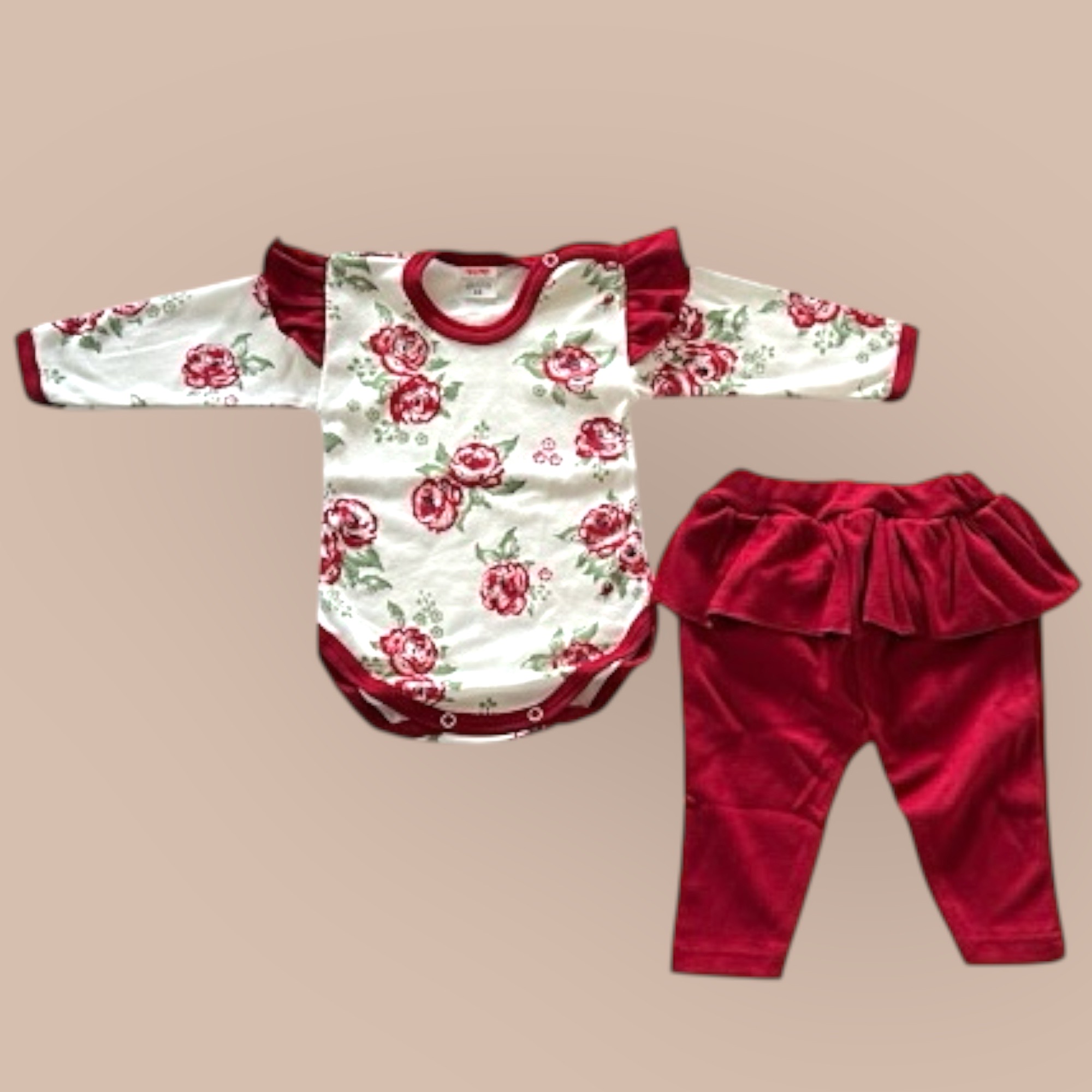 2-delat set ”Roda rosor”. 100% bomull. Body + Leggings
