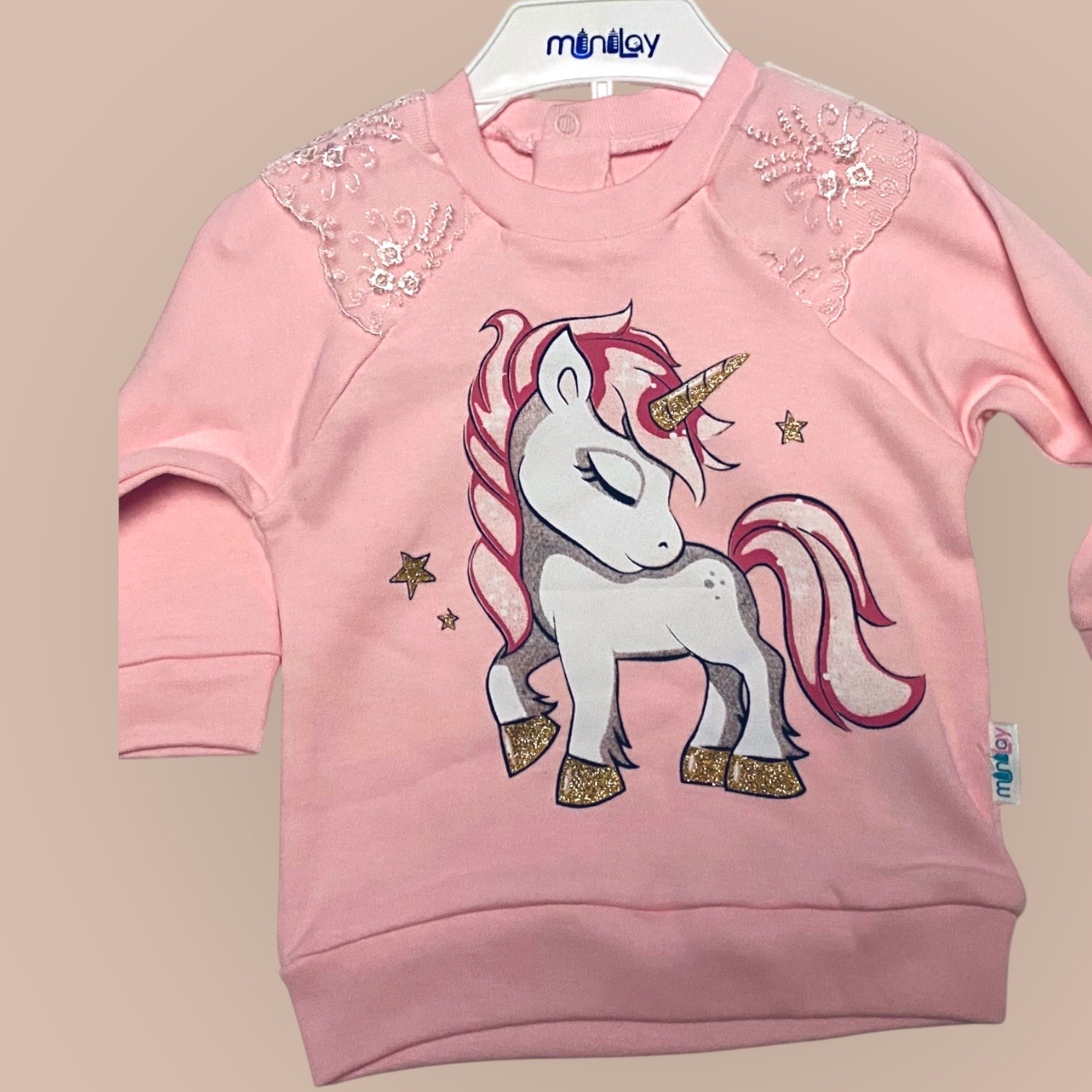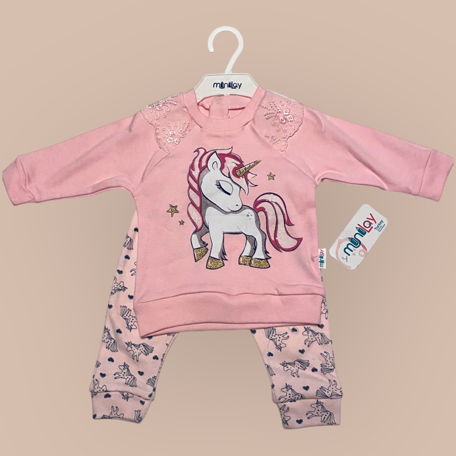 2-Delat set ”UNIKORN”. Dekorativ spets på ärmarna.