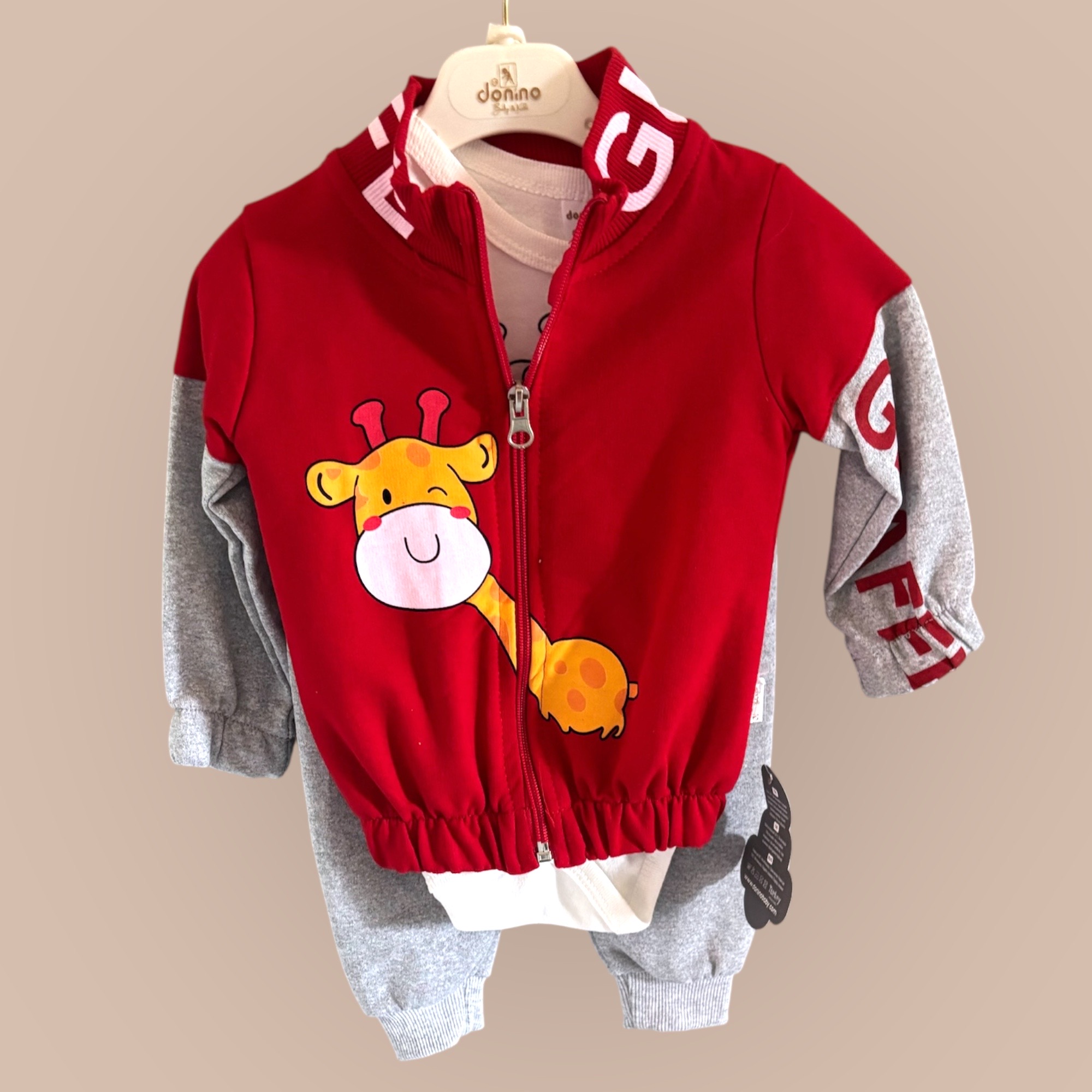3-delat set” Giraff”. Ingår : body ,byxor , sweatshirt med dragkedja.