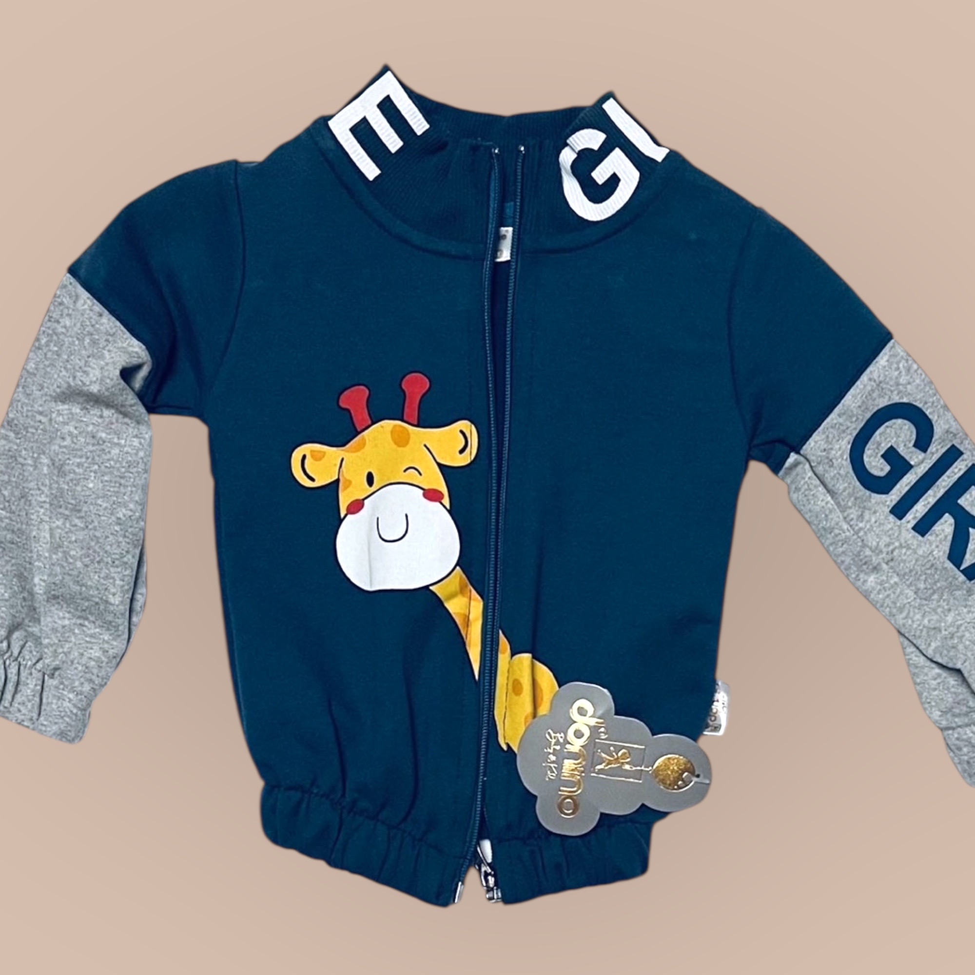 Giraffe set i 3 delar.Ingår :body ,byxor ,sweatshirt med dragkedja.