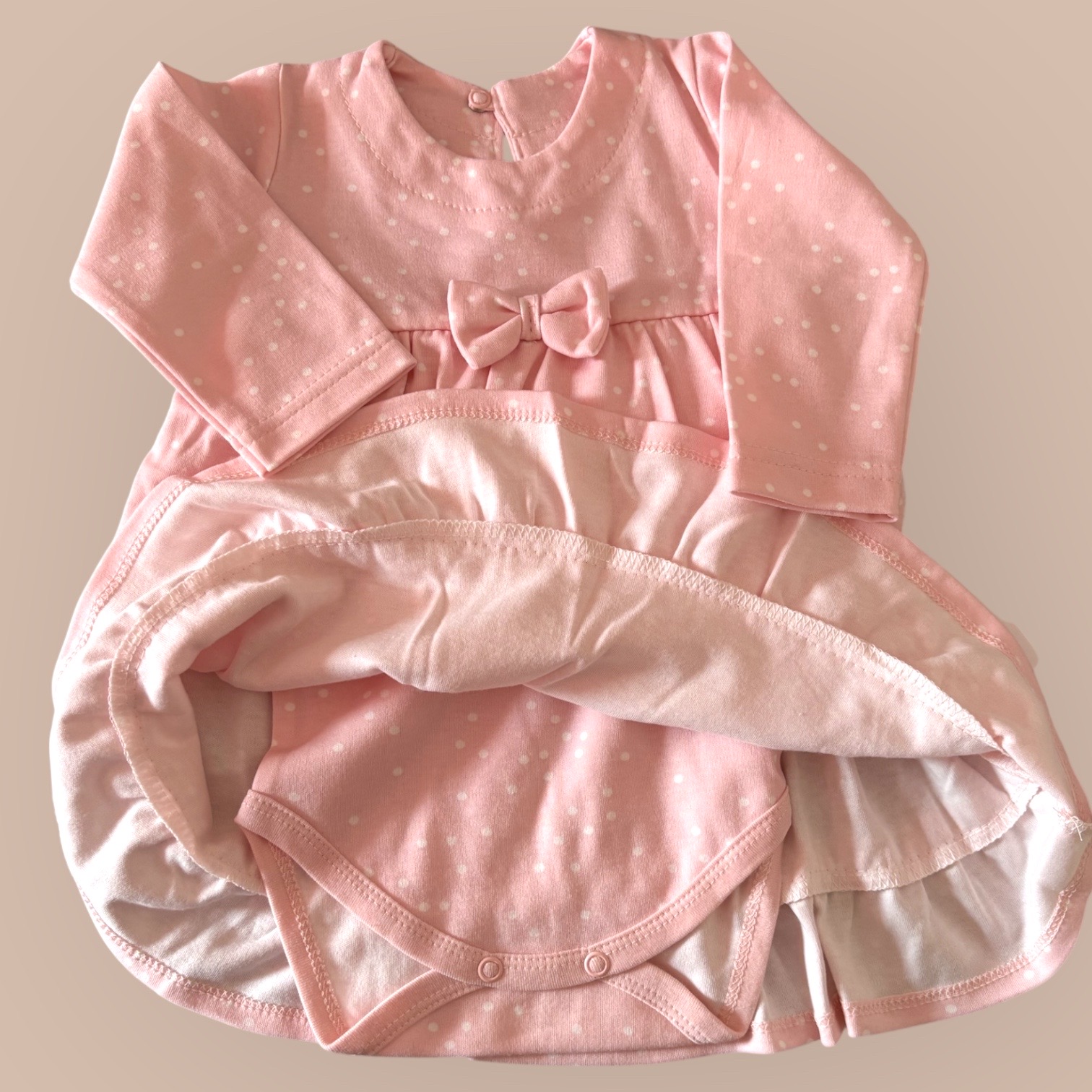 Den här underbara babyklänningen med inbyggt body är skapad för små vardagsäventyr, kärlek och lek. Tillverkad av 100% ekologisk bomull, den är otroligt mjuk, hudvänlig och skonsam mot ditt barns känsliga hud. Tyget låter huden andas och håller din lilla bekvämt sval under varma dagar, samtidigt som det känns varmt och tryggt när det är lite svalare.