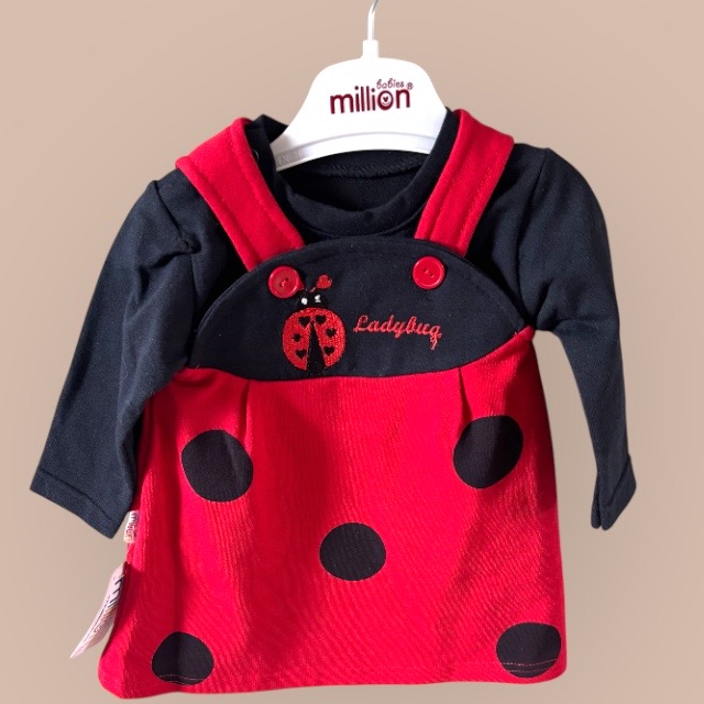 Klänning ” Nyckelpiga” . Klänningen är separat från den långärmade blus .