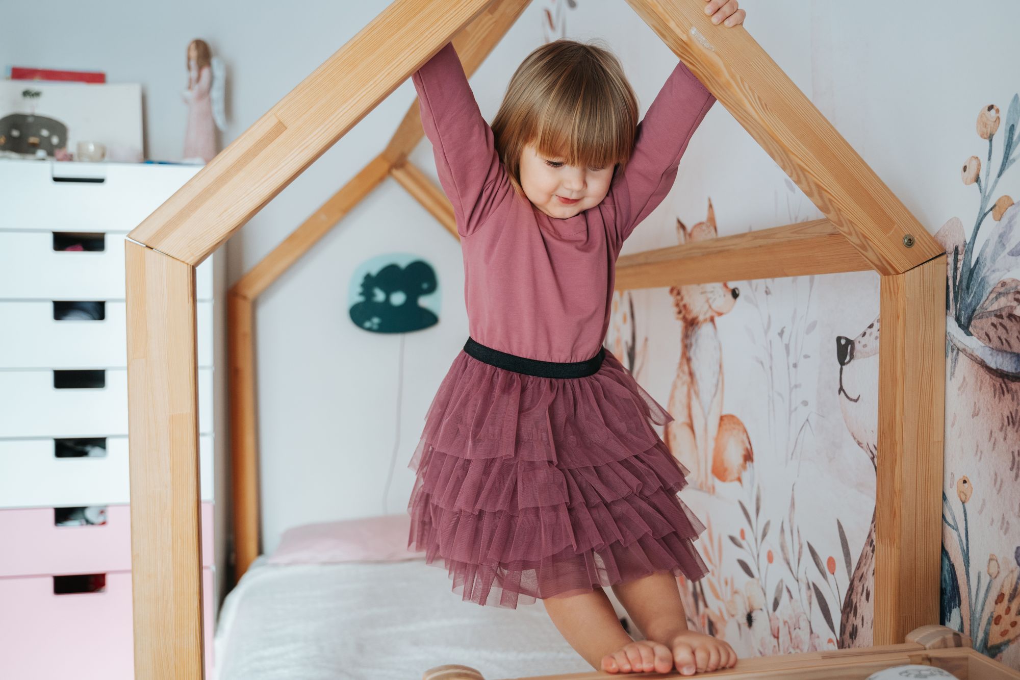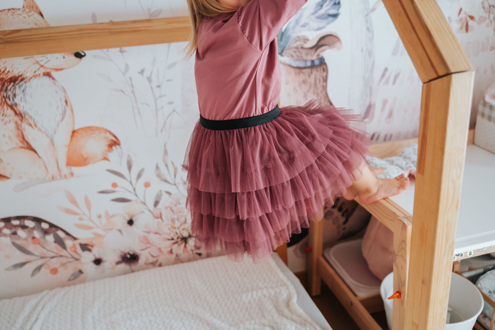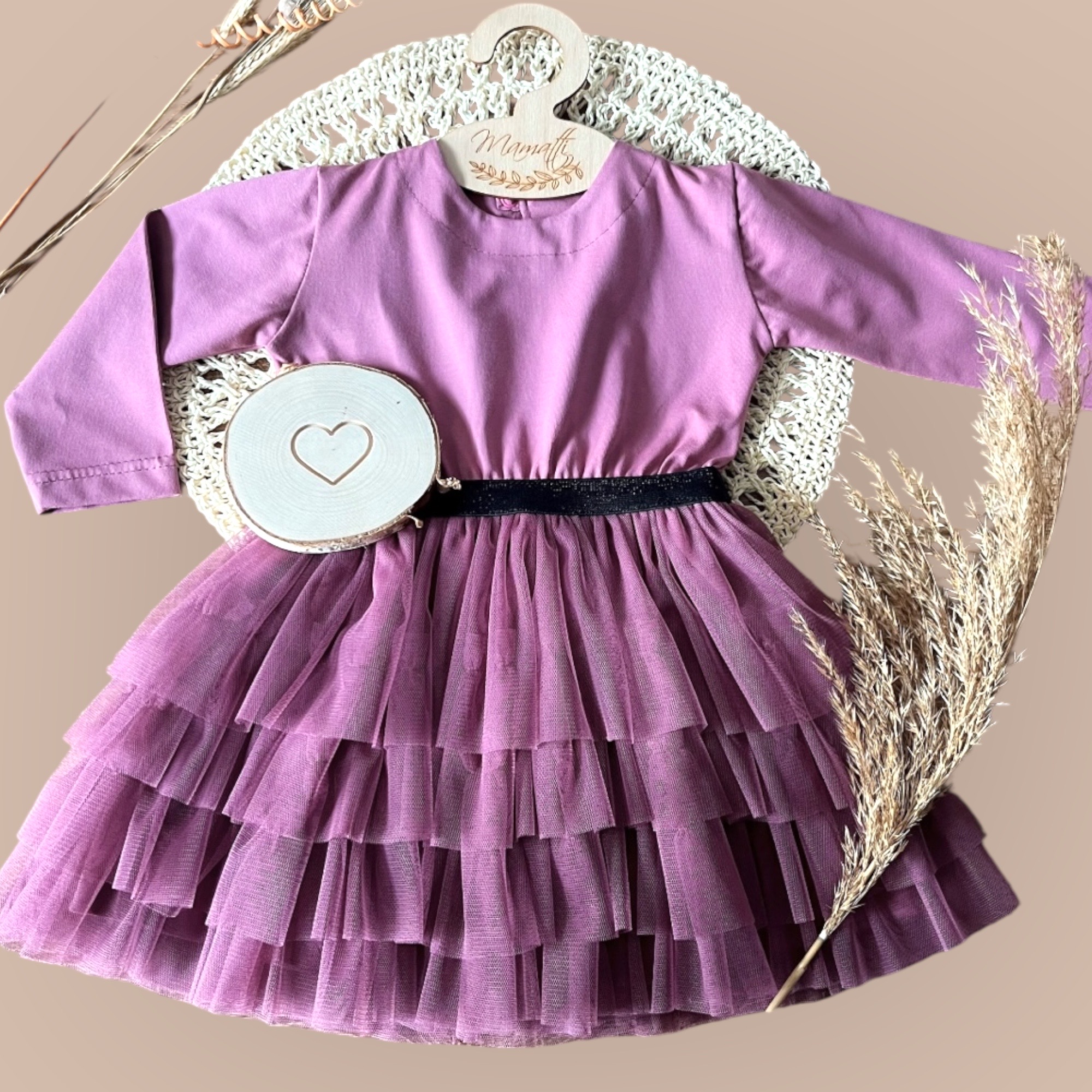 Den här klänningen är perfekt för alla speciella tillfällen Den har en mjuk och bekväm jerseytopp med ett tyllkjol. Toppen är i mjukt bomull och långa ärmar. Tyllkjolen är lagerad och ger klänningen en touch av elegans.