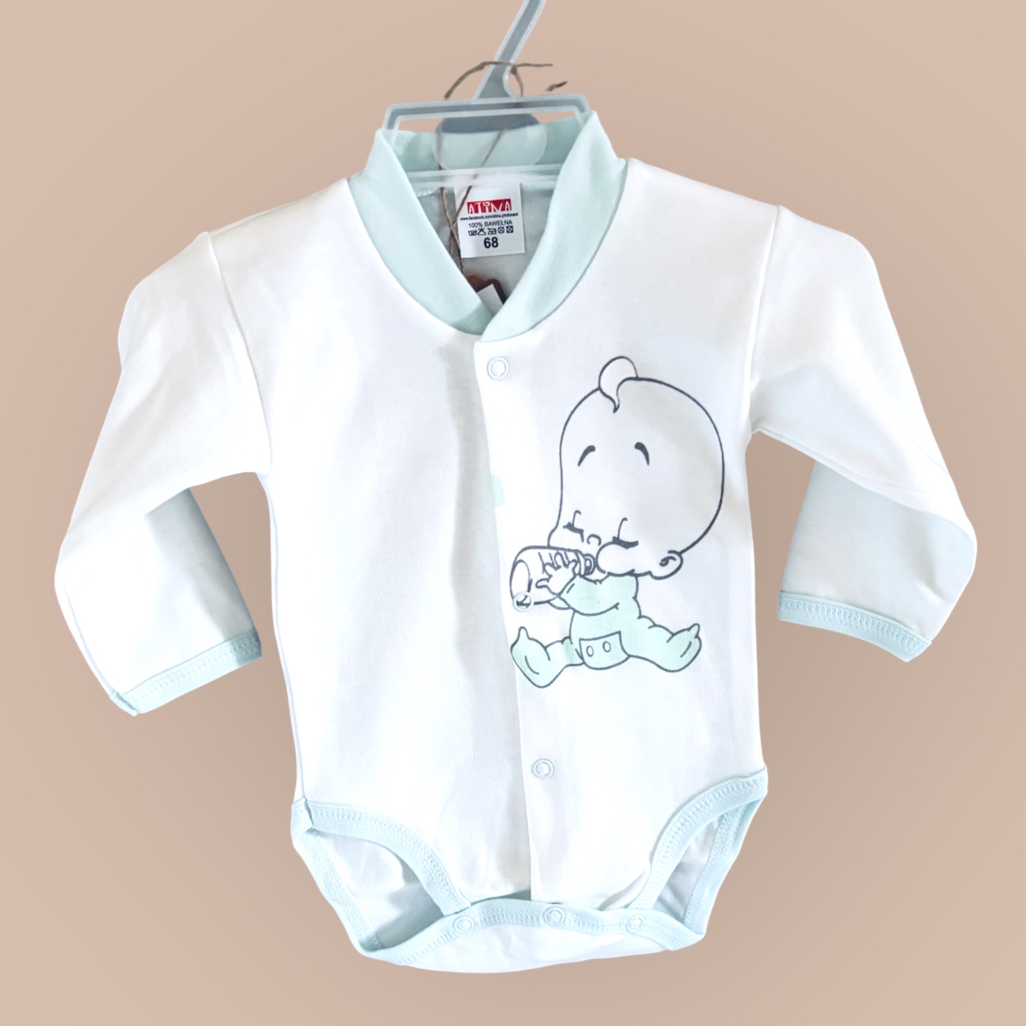 Långärmad body i mjuk och stretchig bomull. Med vår smarta Extended Size Solution kan bebisen växa en storlek och fortfarande använda samma plagg.